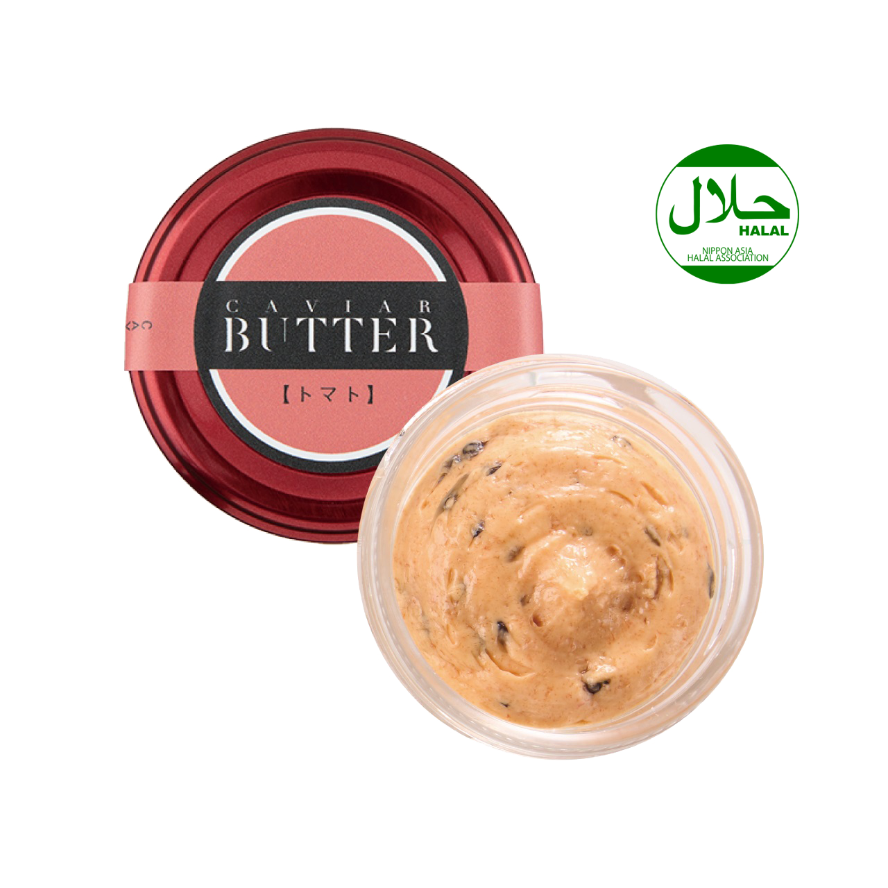 ●キャビアバター〔トマト〕 トマトピューレをバターに練りこみ、キャビアの塩味をいかしておつくりしました。