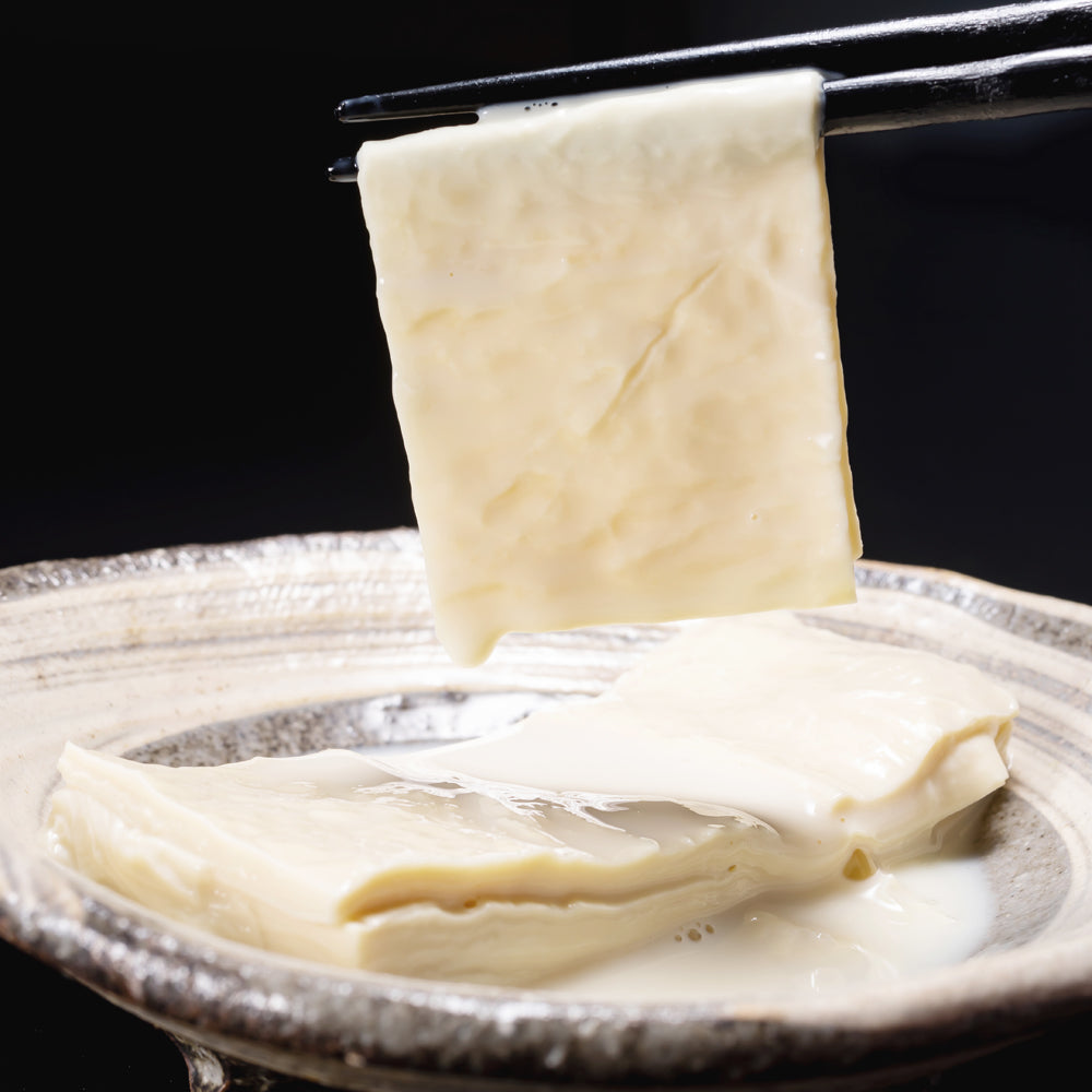 豆乳をたっぷり含んだやわらかい食感の生ゆばを層状に重ねて食べやすいサイズにカットした製品です。そのまま生でお召し上がりいただけ、オリーブオイルと塩でモッツァレラチーズのような食べ方も可能です。冷蔵で長期保存でき、食品ロスの削減に貢献します。