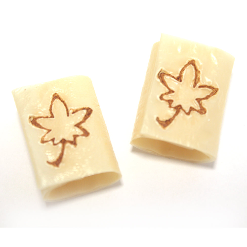 お吸物用の細工ゆばです。職人が一つ一つ丁寧に巻いて「楓」の焼印を押しました。熱い汁を注ぐと約1分でやわらかくなり、お吸物やお味噌汁、茶わん蒸しに使用できます。